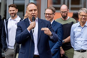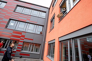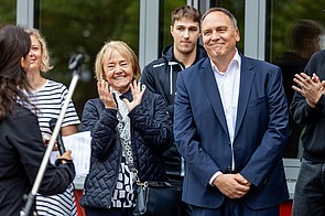 Riesige, dunkelblaue und hellblaue Luftballons schwebten bei der Anfangsveranstaltung durch die Luft. Das sind die Farben unserer neuen Schule. Demnächst fusionieren die ehemalige Kaufmännische Schule und die Wingertschule auch offiziell und heißen dann Berufliche Schulen am Gradierwerk. Das wurde an diesem Tag auch gebührend gefeiert.