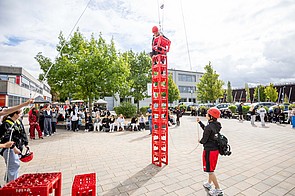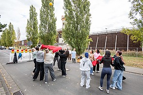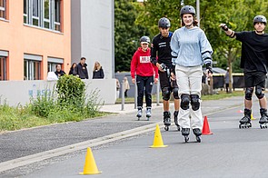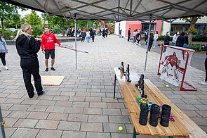 Neben den 20 Sport-Workshops der Vereine boten über 30 erlebnispädagogische Stationen, die von Studierenden der Fachschule Sozialwesen betreut wurden, zusätzliche Herausforderungen. Hier gab es für die vielen neu eingeschulten Klassen Möglichkeiten, sich als Team zu finden und zusammenzuwachsen. Für Spaß sorgten attraktive Stationen, die einfach nur zum Mitmachen einluden, wie Floorball, Tischtennis, Klettern und Bouldern, Badminton, Waveboard, Inliner, verschiedenste Tanz-Workshops für jeden Geschmack, Netball und Slacklining – die Vielfalt an Aktivitäten ermöglichte es den Schülerinnen und Schülern, neue Sportarten auszuprobieren und – vielleicht sogar mit der Aussicht, für sich ein neues Hobby zu entdecken. Klassiker, wie Kistenklettern und Bobbycar-Racing durften auch nicht fehlen.